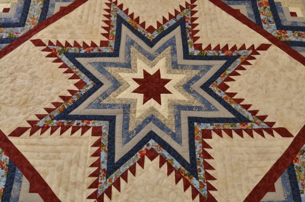 The saw-tooth border is such a stunning accent to the star medallion, the focal point in this traditional Log Cabin quilt.