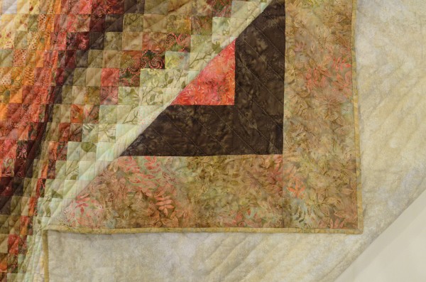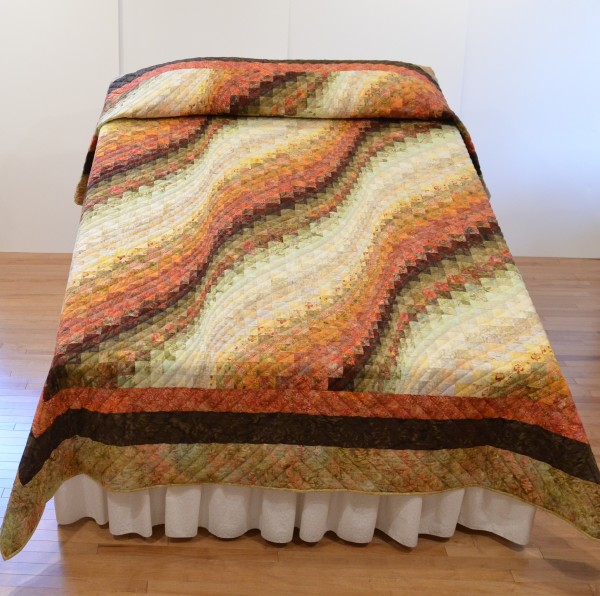 The more than 2,000 blocks are hand-quilted across the diagonal, enhancing the movement of the piece.