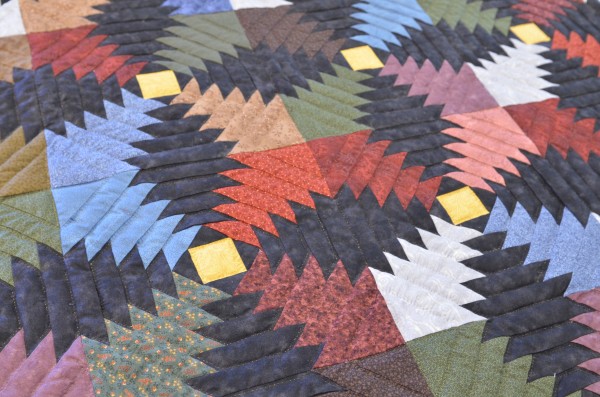 The all-over design holds a lot of energy and is happily framed with both sashing and border. This pattern is always a favorite among quilt buyers for is old-fashioned appeal and modern aesthetic.