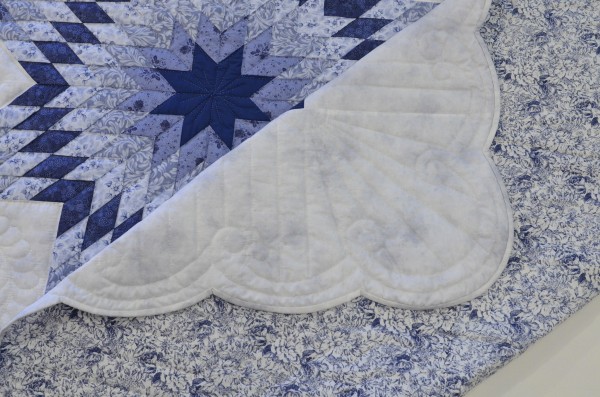 The design fits nicely on the surface area of the mattress. The simple outer border features a scalloped edge and elegant quilting.