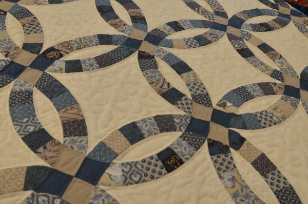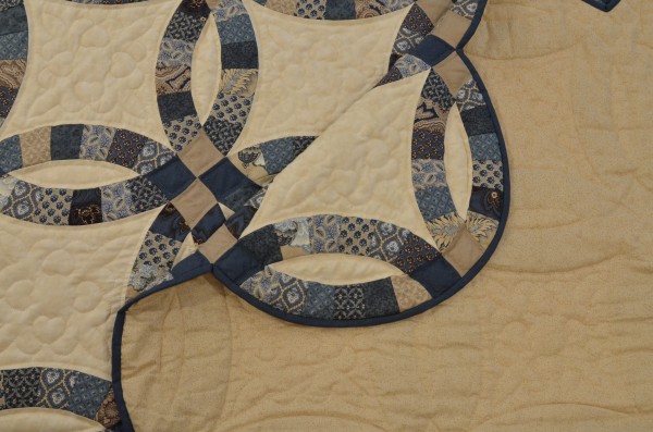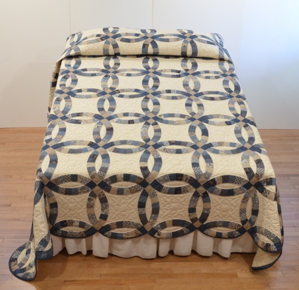 This traditional pattern is an elegant addition to any bedroom and is often gifted as a classic wedding or anniversary gift. The intertwining circles created from curved pieces of fabric require a skilled seamstress, and the intricate hand-quilting exemplifies outstanding workmanship.