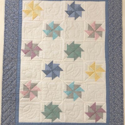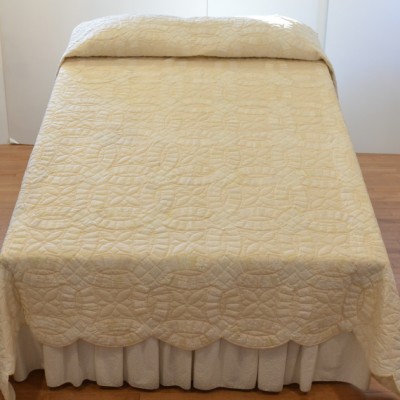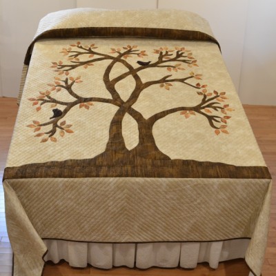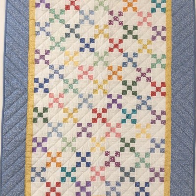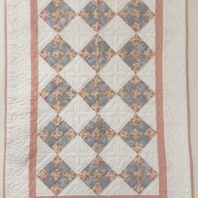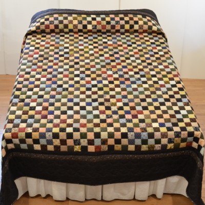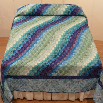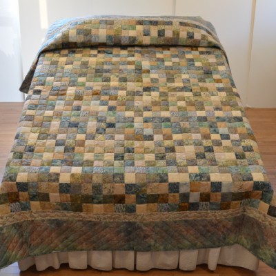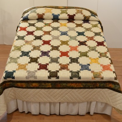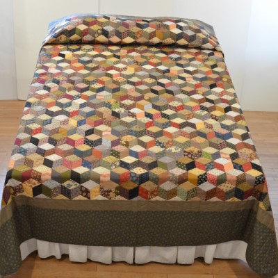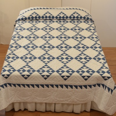 The more than 2,000 blocks are hand-quilted across the diagonal, enhancing the movement of the piece.