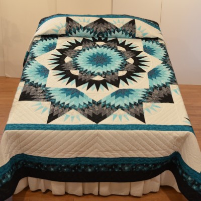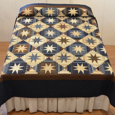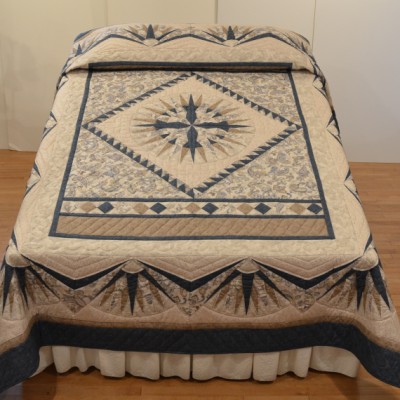 A stunning Mariner's Compass Star creates a center medallion of this handsome quilt.