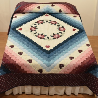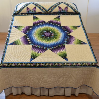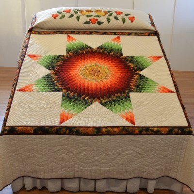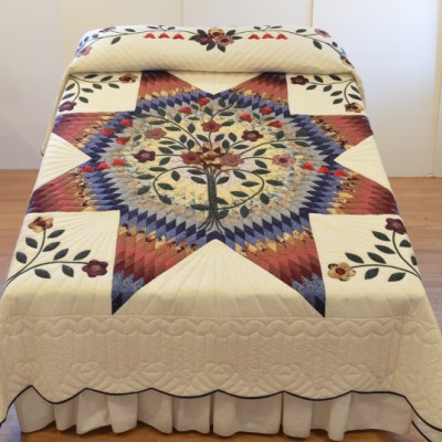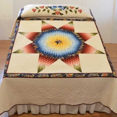 Precise piecing and intricate hand-quilting make this quilt a stunning heirloom.