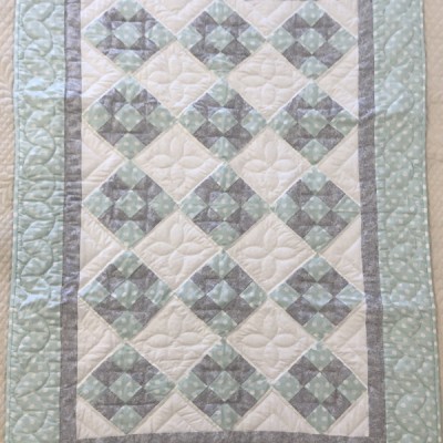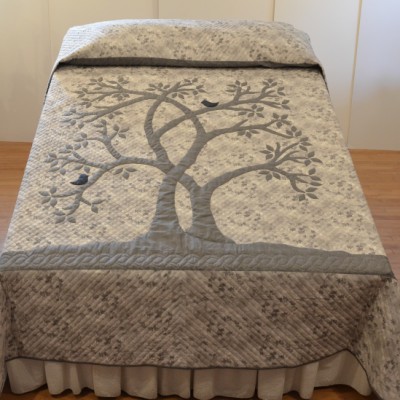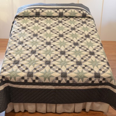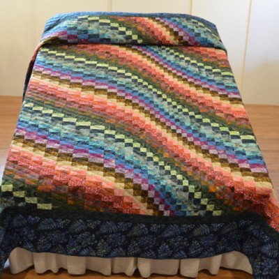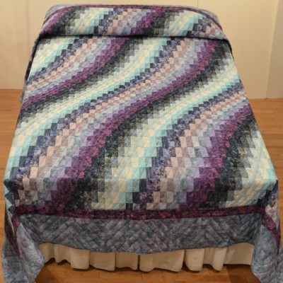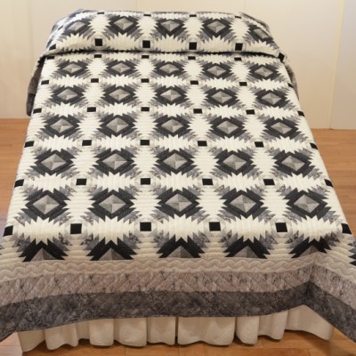 The more than 2,000 blocks are hand-quilted across the diagonal, enhancing the movement of the piece.