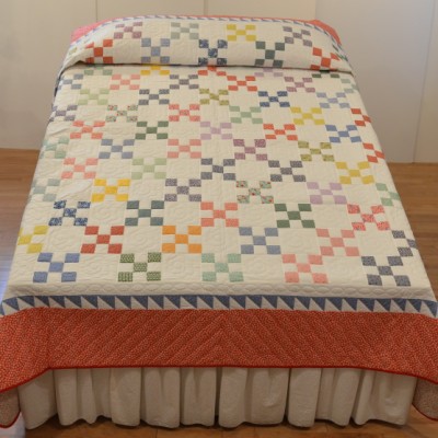 The beloved Log Cabin block dances happily with the traditional Fan block in this design.