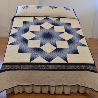 This quilt marries the popular Lone Star pattern with a Boston Commons pattern.