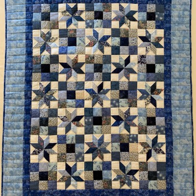 This quilt marries the popular Lone Star pattern with a Boston Commons pattern.