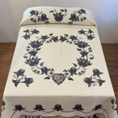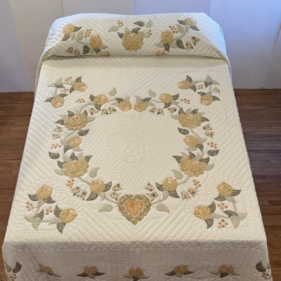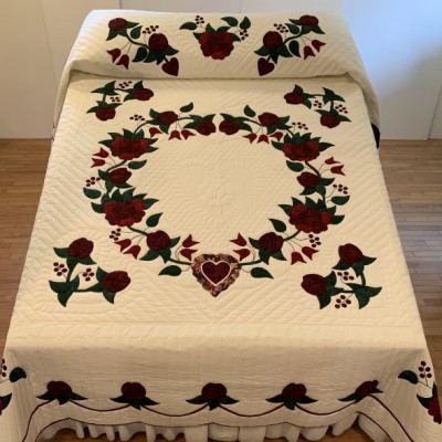 Precise piecing and intricate hand-quilting make this quilt a stunning heirloom.