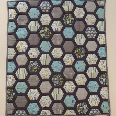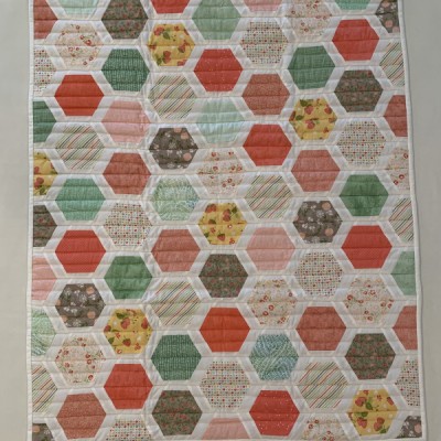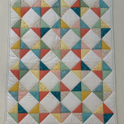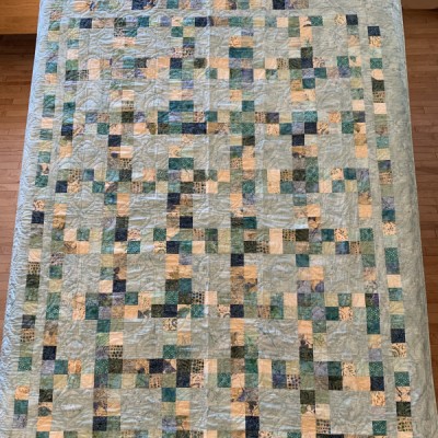 The more than 2,000 blocks are hand-quilted across the diagonal, enhancing the movement of the piece