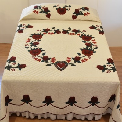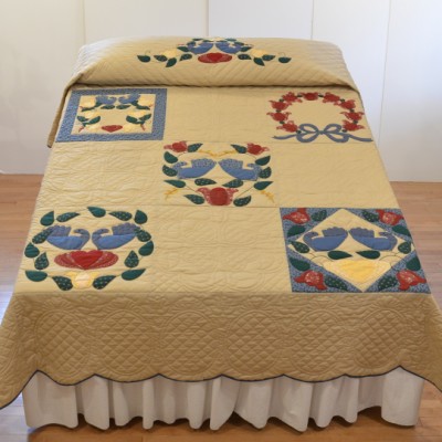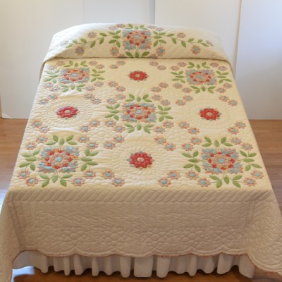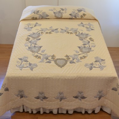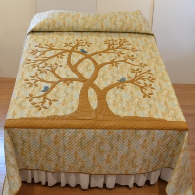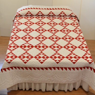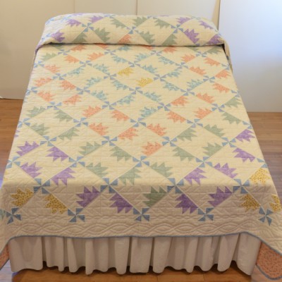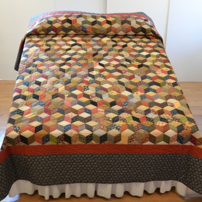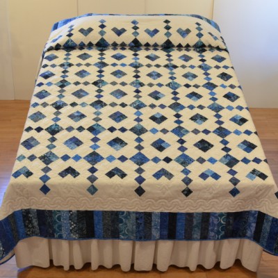 The more than 2,000 blocks are hand-quilted across the diagonal, enhancing the movement of the piece.