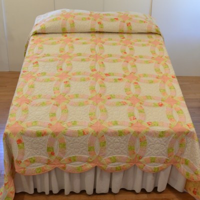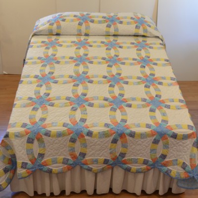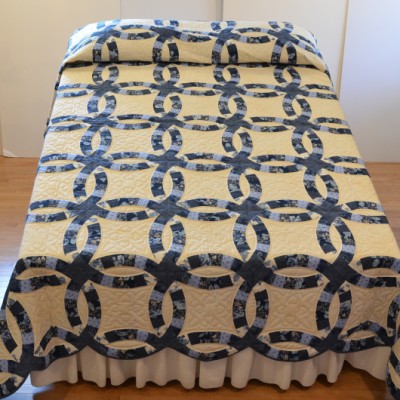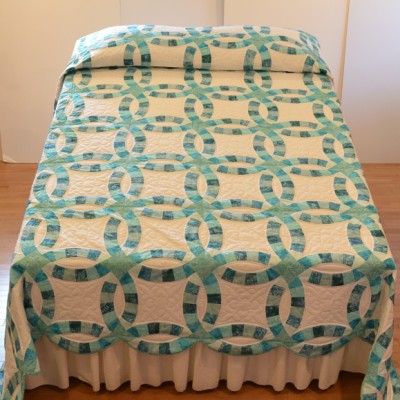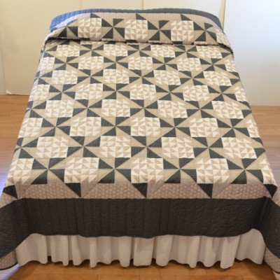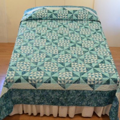 The more than 2,000 blocks are hand-quilted across the diagonal, enhancing the movement of the piece