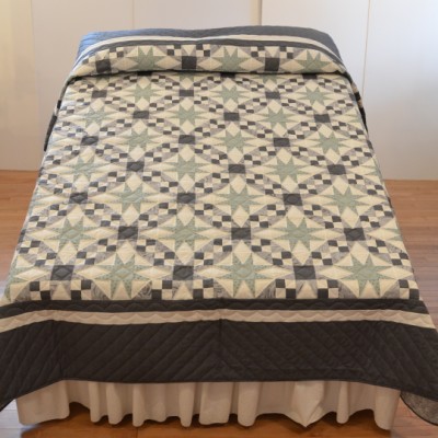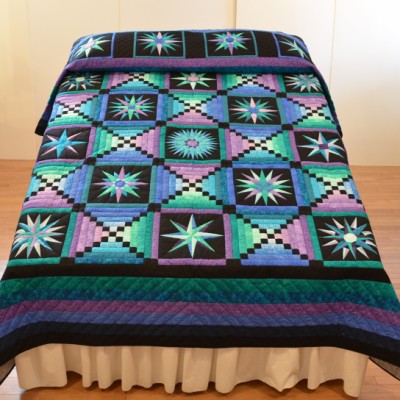 This quilt marries the popular Lone Star pattern with a Boston Commons pattern.